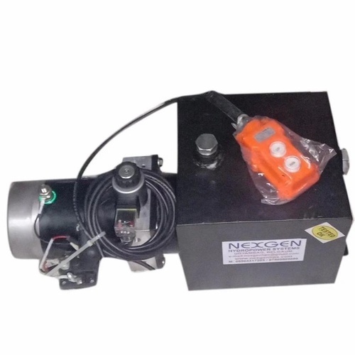 Nexgen DC Hydraulic Power Pack for cement trucks. 230V, 1.6kW motor power, automatic grade, mild steel construction, black color.