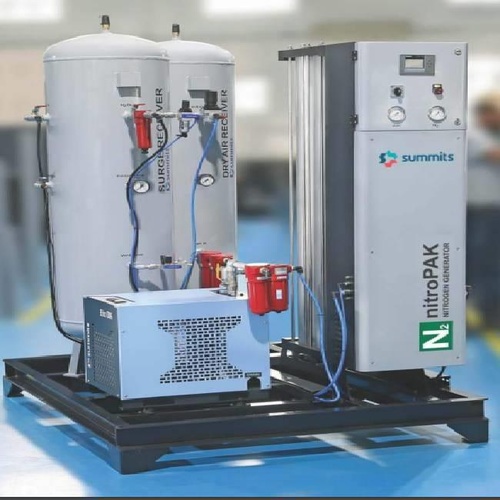 Generates nitrogen with outlet pressure of 5.0 bar(g) and a pressure dew point of -40°C. Operates at 6-10 barg with minimal oil and particulate content in feed air.