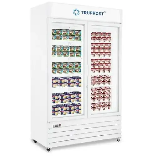 This double door visi freezer is designed with no-frost technology for efficient operation. Ideal for commercial display and storage. Provides reliable temperature control for frozen goods.