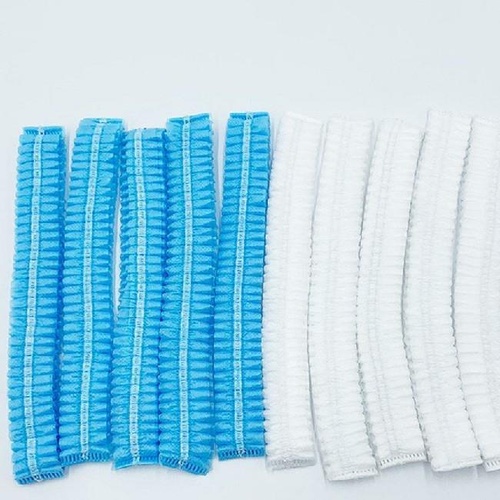 Blue, disposable nonwoven head caps for hospital use. Available in 18" and 21" sizes, weighing 17 gm max. Made in India. Minimum order quantity 1000 pieces.