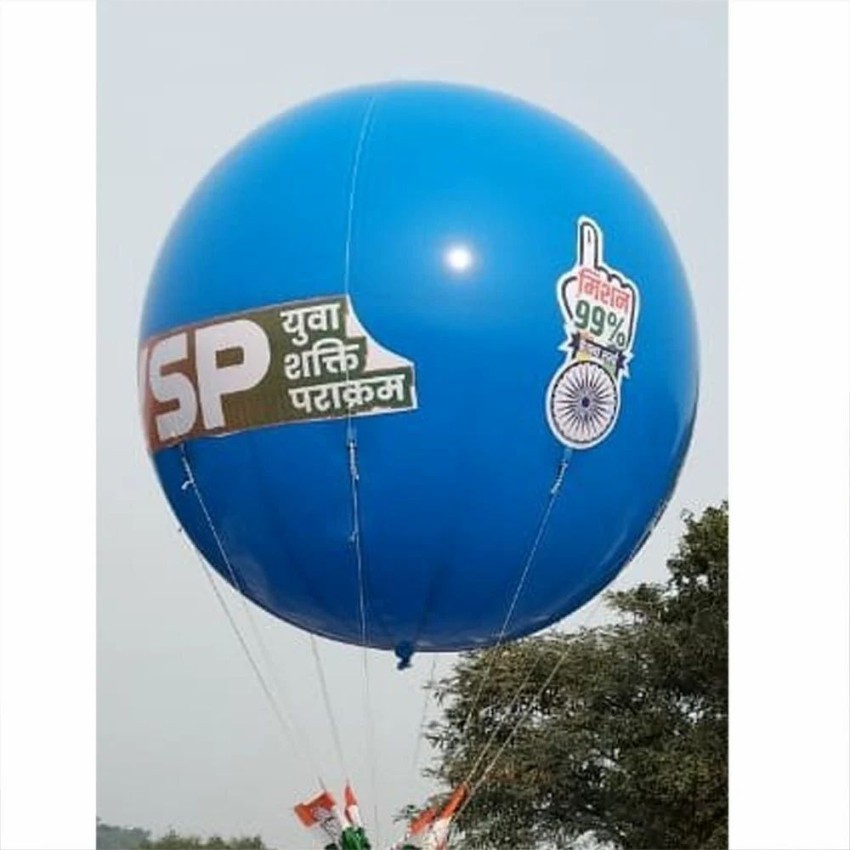 Nylon inflatable sky balloon for advertising. Blue, printed, 8 x 8 feet size. This durable inflatable balloon is perfect for outdoor promotions.
