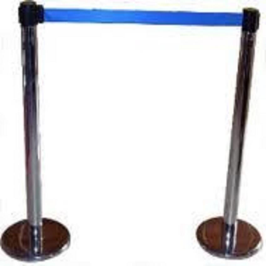 Nylon queue manager with a blue belt for industrial and commercial use. Features silver finishing and customized belt length. Available ex-stock or with a 1-week delivery time.