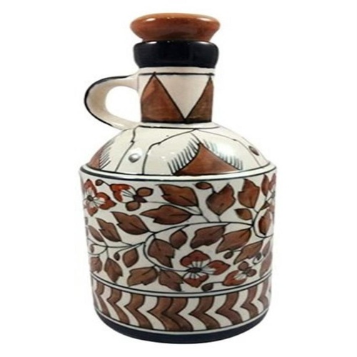 Brown ceramic multipurpose storage bottle with a screw cap. 1-litre capacity. Made in India. Suitable for various storage needs in the home.