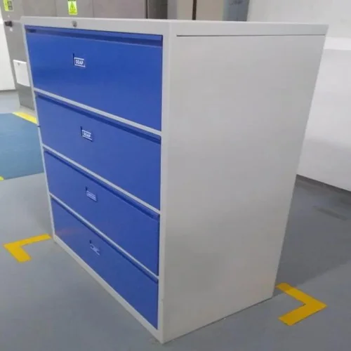 Gray mild steel filing cabinet for office use. Features a paint-coated finish and 4 drawers for efficient document management. Ideal for office organization.