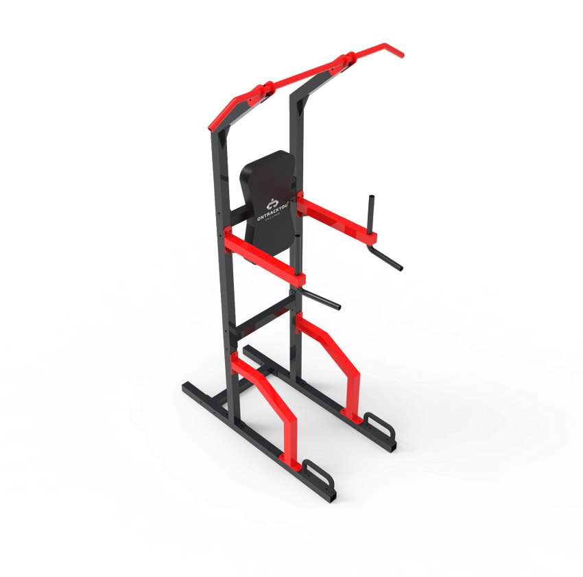 This manual vertical knee raise and dip chinup machine is constructed from mild steel for gym use. Dimensions: 1270mm L x 700mm W x 960mm H.