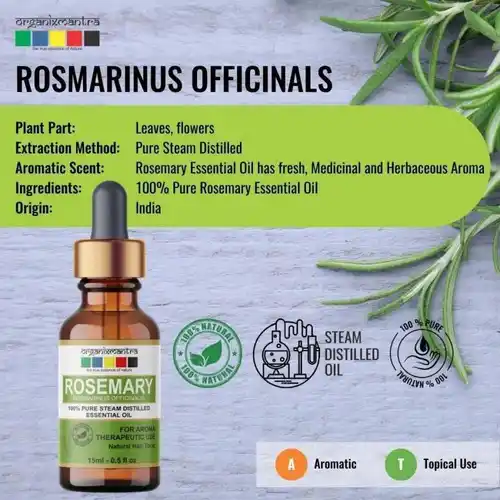 Organix Mantra Rosemary Essential Oil, 15ml bottle. 100% Pure and Undiluted, extracted via Cold Press from leaves. For hair and skin.
