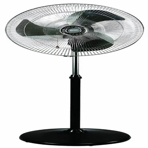 Black domestic pedestal fan with 3 metal blades and copper motor. Standable mounting type, model Tornado. Dimensions: 55.9x40.6x30.5 cm.