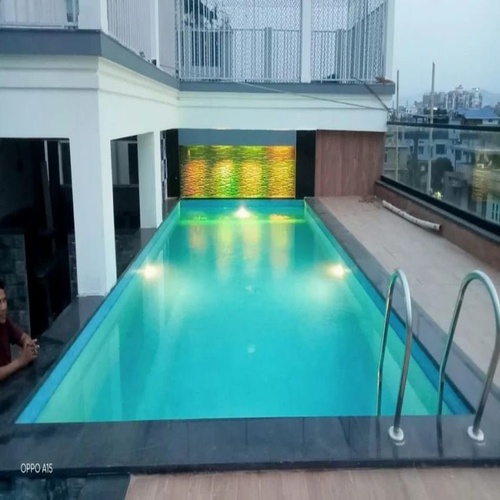 Outdoor prefabricated FRP swimming pool for residential use. Available for PAN India service with flexible payment options.