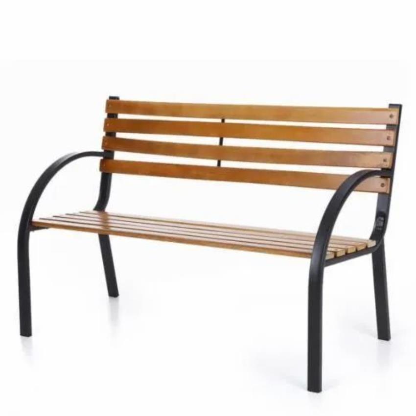 This park bench is designed for outdoor environments. Its sturdy construction provides reliable seating for park visitors.