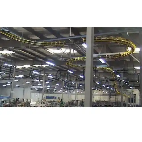 Customized stainless steel overhead conveyor equipment with a 60 kgs capacity. Designed for efficient material transport in industrial settings.