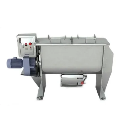 Electric paddle type mixer machine, 100-120 kg/h capacity, for feed industry applications. Constructed from Mild Steel or Stainless Steel.