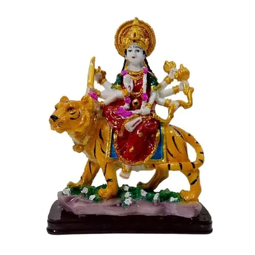 Hindu religious ceramic idol of Shera Wali Mata, 1 piece minimum order. Painted pattern, suitable for worship, made in India.
