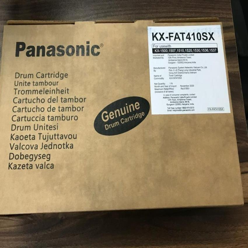 Carbon steel drum unit for Panasonic KX FAT410SX. Black color and packaged in a protective box. Essential component for laser printing equipment.