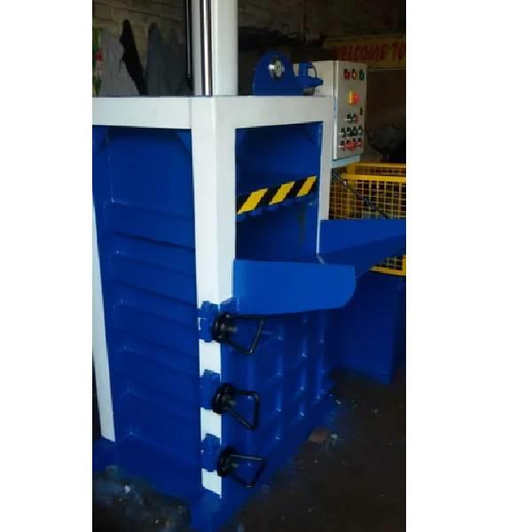 Semi-automatic paper baling press device for paper industries. Constructed from mild steel with a 3.5 HP motor, three-phase power, and 1-4 ton pressure capacity.