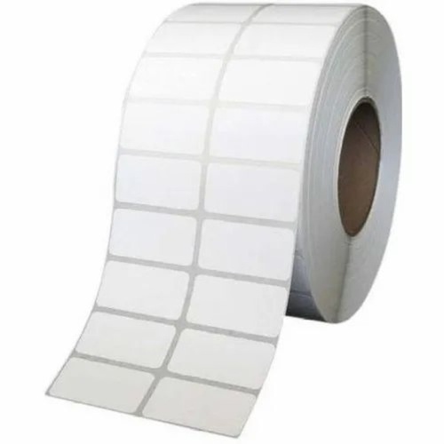 Plain paper barcode sticker labels with a glossy finish. These waterproof labels are supplied on a roll for barcode printing applications. Available in stock.