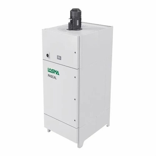 Single or three-phase dust and fumes extractor with 1,500-2,500 mc/h flow rate. Features automatic operation and 99.97% filtration efficiency. Electrical power source.