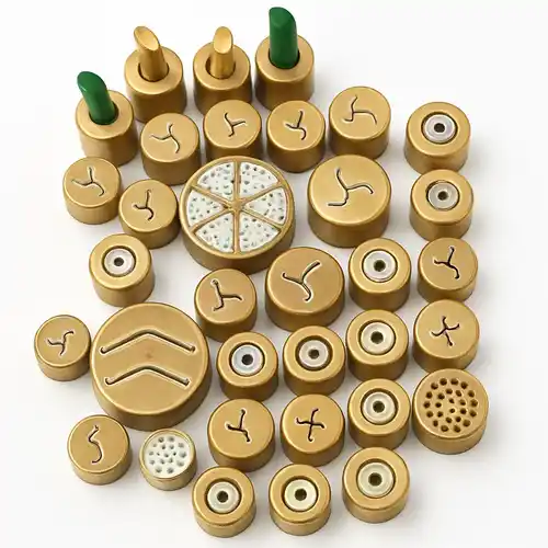Set of pasta die inserts for pasta machines. Durable construction ensures longevity and consistent pasta shaping for various pasta types. Easy to clean and maintain.
