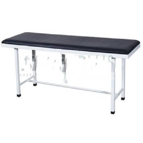 Powder-coated examination table for hospitals. Dimensions: 1830x600x810 mm. Not foldable, no knee rest tilt. Packaged in bubble wrap and boxes.