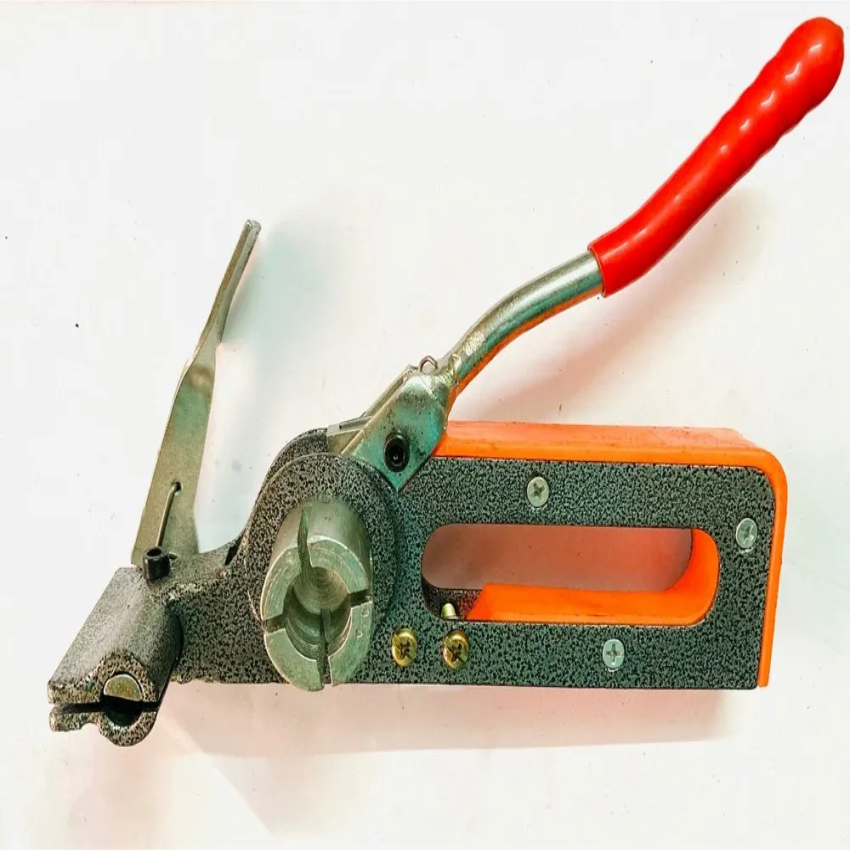 SEW-T-48 plastic patti packing machine. Designed for 12mm strap width. Features 8-inch overall length. Suitable for single piece packaging in a box.