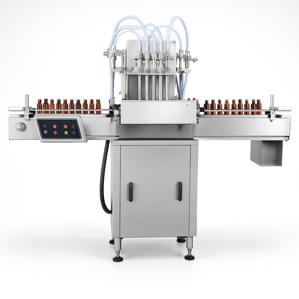 Electric driven stainless steel filling machine for pesticides. Features a 90 BPM capacity and operates on 3-phase 415V, 50 Hz power.
