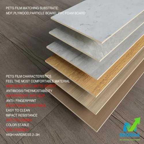 Plain PETG film with a glossy surface finish. 0.5 mm thickness, rust-proof features for lamination applications. Designed for durable and protective finishes.