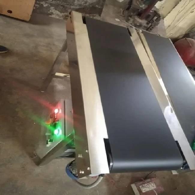 Pharma batch coding flat belt conveyor. Load capacity 1000 kg. 12 months warranty. Designed for pharmaceutical batch coding applications.