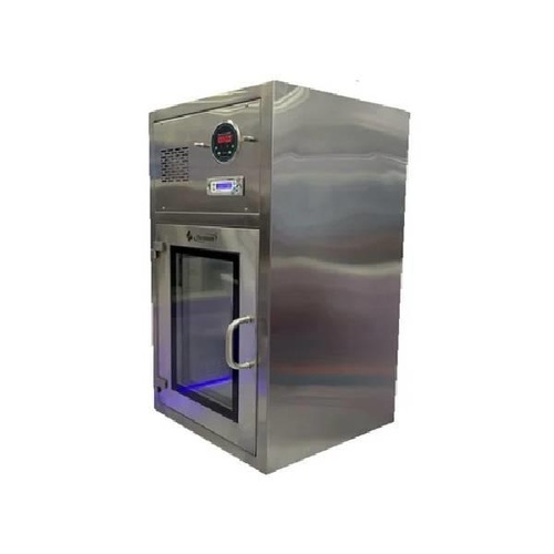 Dynamic Pass Box for pharmaceutical industry applications. Available in 2x2, 3x3, and custom sizes. Constructed from MS powder-coated or SS 304 material.