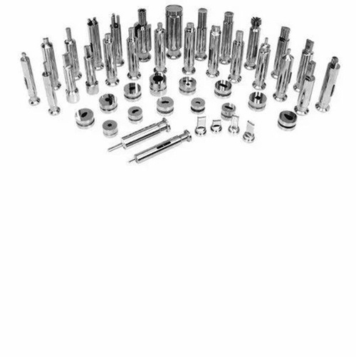 Round stainless steel dies and punches for pharmaceutical tablet pressing. Made from OHNS material for durability. Ideal for sterile tablet production in India.