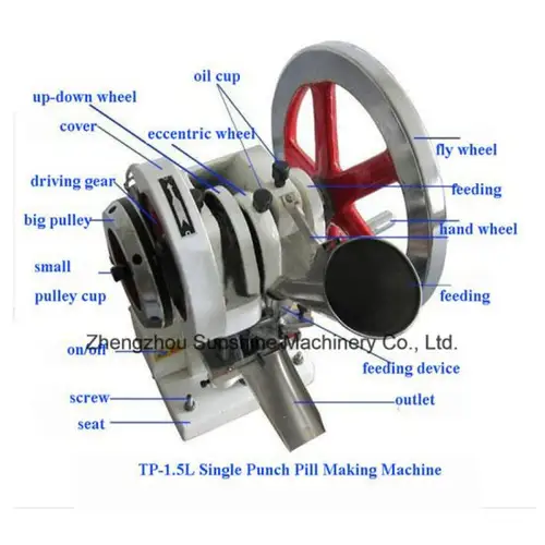 Rust-proof mild steel tablet punching machine operating on 220V electricity. Designed for efficient operation in the medical industry.