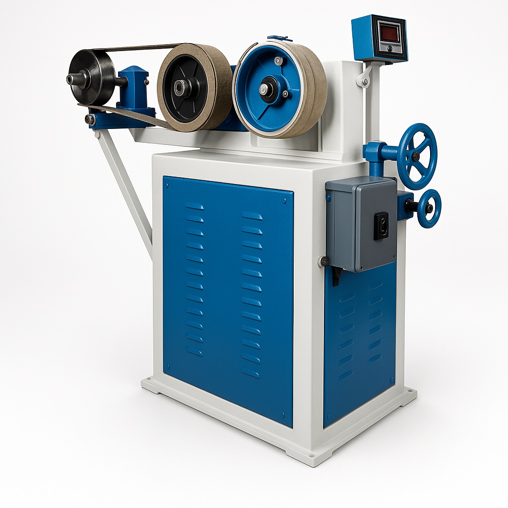 Semi-automatic mild steel pipe and rod polishing machine. Includes a coolant pump. Production capacity and power consumption rated at 5 units.