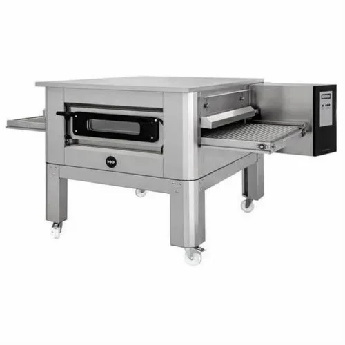 Single-phase conveyor pizza oven operating at 60/50 Hz with 17.4 kW electric power. Dimensions 2070x1320x560mm. Nett weight 284 Kg.