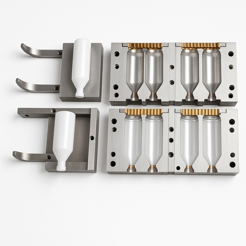 Polished plastic bottle mould with 2-5 million shot life. Features 2344 moulding cavities and a cold runner system.
