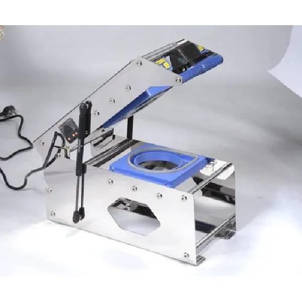 Plastic cup sealing machine designed for box packaging. Offers normal sealing speed. Suitable for various plastic materials and box configurations.