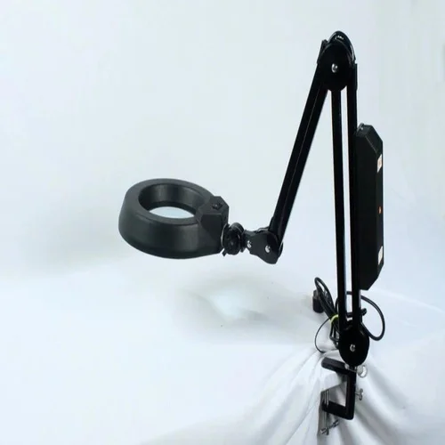 Plastic body with brass accents. Features 10x magnification and a 100mm lens diameter. Lightweight design for easy handling. Ideal for detailed inspection tasks.