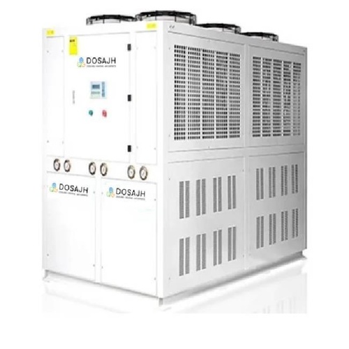 Industrial plastic chiller machine with scroll/screw compressor option. Operates on 3-phase, 415V, 50Hz. Offers 1000 CFM nominal airflow and a cooling temperature range of 5°C to 30°C.