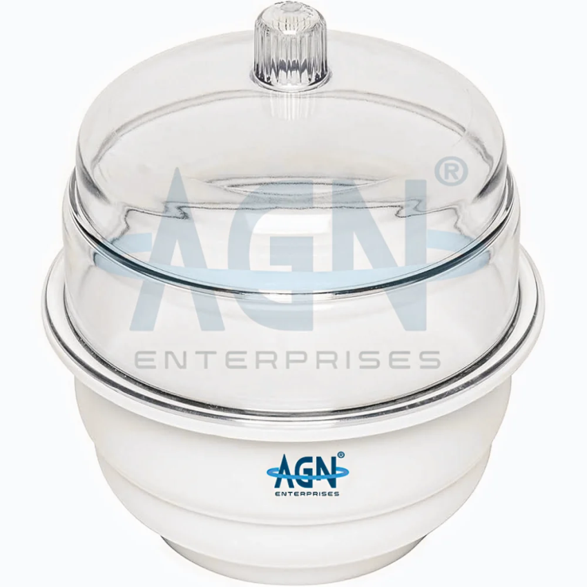 This 150 mm plastic desiccator is made from strong, chemical-resistant plastic. Designed for laboratory use, it ensures reliable moisture control. Made in India.