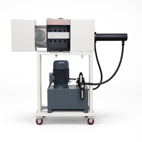 Semi-automatic plastic granules dye screen changer. Features 1.5 kW power, 240V cartridge heater, and 50 Hz frequency. Capacity dependent on material. Density 1.36 g/cm3.