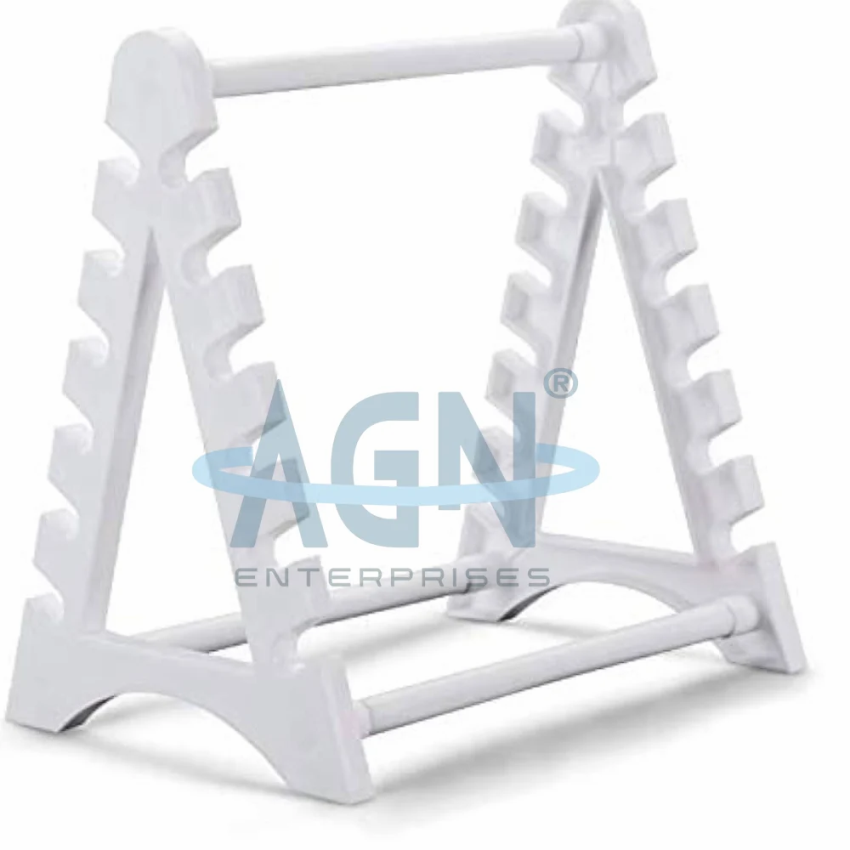 Horizontal plastic pipette stand designed for chemical laboratories. Holds 12 pipettes with an adjustable stand type. Model number AGN-CH173. Made in India.