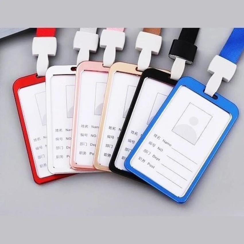 This plastic card holder is designed for ID cards. Its model is named 'Metal Card Holder'. It is a versatile type of card holder.