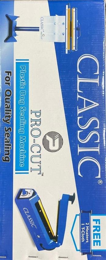 Single phase electric plastic bag sealing machine. Features a 12" size. Made in India for efficient plastic sealing applications.