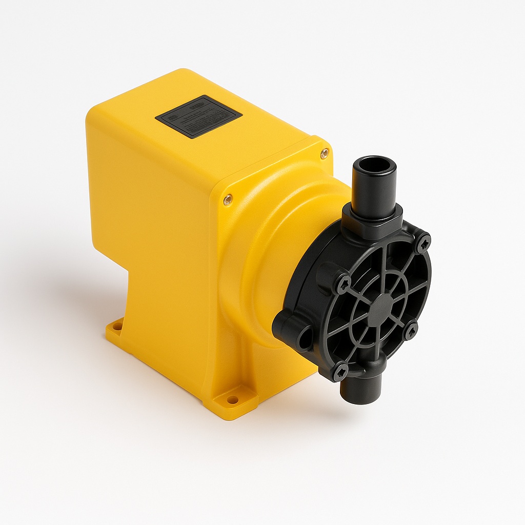 Plastic dosing equipment for swimming pools. Electric power source. Available in yellow and black, blue, yellow, and black color options. Non-waterproof design.
