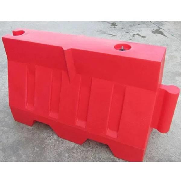 Durable plastic traffic barrier, 800mm length, 640mm height, in red. Ideal for road traffic control and safety management.