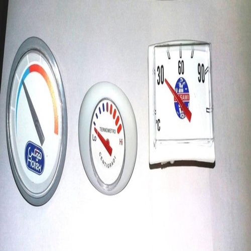 White plastic thermometer for water heaters. Measures temperature range 10-90°C or 30-91°C. Ideal for water heater applications.