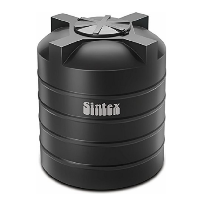 Black plastic water storage tank with a 500L capacity. Durable and designed for water storage applications. Ideal for residential and commercial use.