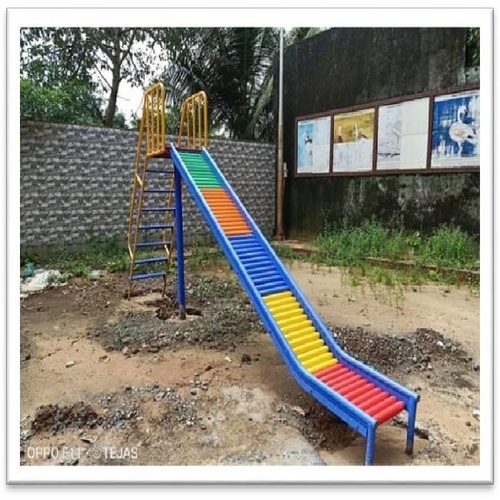 Roller slide with a 7ft height, requiring a 2.5ft width by 22ft length area. Suitable for playground installations.