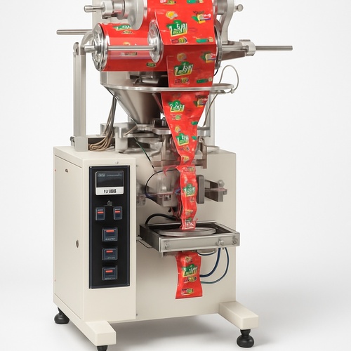 Automatic mild steel cup filler machine with 1000-2000 pouch/hour capacity. Electric driven, 3.5 kW/hr power consumption, for industrial free-flow product packaging.