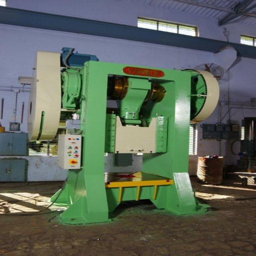 Semi-automatic power press machine utilizing both pneumatic and mechanical power sources. Designed for industrial applications. Specific capacity and material details not provided in original specifications.