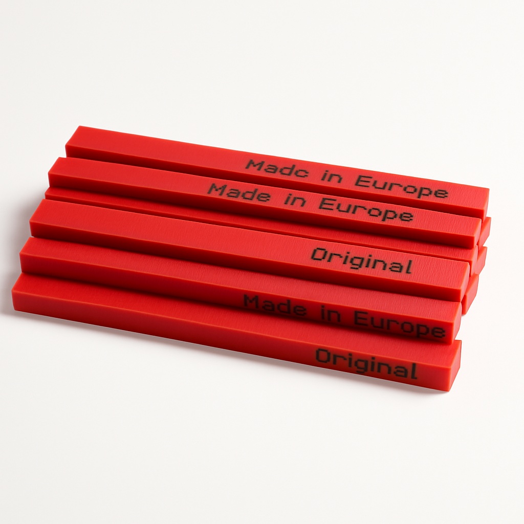 Durable plastic cutting sticks for the printing industry. Available in red and orange. Minimum order quantity 100 pieces. Size: 790mm x 10mm x 4.5mm.