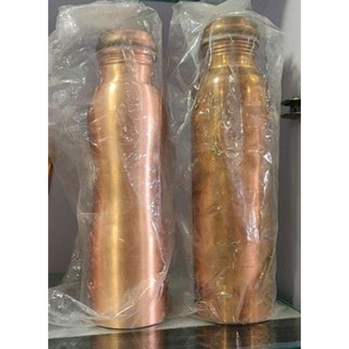 500 ML polished copper water bottle. Features a secure screw cap for leak-proof storage. Designed for drinking water applications. Packaged for retail distribution.
