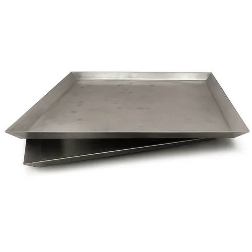 Large rectangular stainless steel tray with a polished finish. Measuring 14 inches in length and (22x32.9) cm dimensions. Manufactured in India, without a copper base.